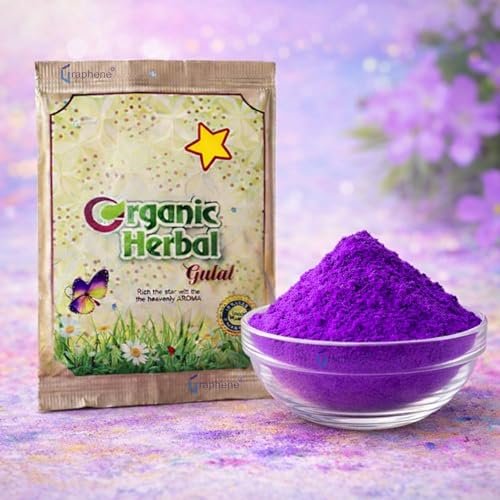 GRAPHENE Holi Purple Herbal Organic Fruit Gulal Color Pack of 1 80g Eco-Friendly Non Toxic Natural Rang for Kids Chemical Free Vibrant Festival Powder Holi Pool Party Boys Girls Abeer is available on Amazon at best discounted online price. Original price of this product is ₹ 199. You can buy this product at discounted rate ₹ 79.