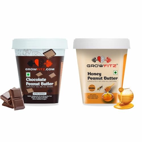 Growfitz Peanut Butter Chocolate Crunchy & Natural Honey Combo | 24g High Protein Peanut Butter | 7g Fiber | Tasty & Healthy Nut Butter Spread for Breakfast | Roasted Peanuts | Zero Sugar is available on Amazon at best discounted online price. Original price of this product is ₹ 499. You can buy this product at discounted rate ₹ 269.