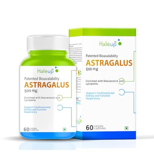 Haleup Astragalus 500 mg || 60 capsules || Enriched with Resveratrol & Lycopene || Heart & Immune Support || Researched in USA (Pack of 4, 240) is available on Amazon at best discounted online price. Original price of this product is ₹ 7996. You can buy this product at discounted rate ₹ 1219.41.