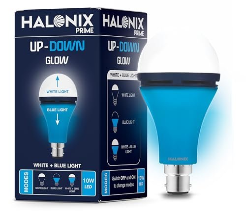 Halonix 10W Up-Down Glow White & Blue 3-Mode B22D LED Bulb | Switch On/Off to Change Color | Decorative LED Bulb | White and Blue Color is available on Amazon at best discounted online price. Original price of this product is ₹ 299. You can buy this product at discounted rate ₹ 179.