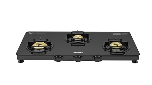 Havells Contour Toughened Glass-Top 3 Brass Burner LPG Gas Stove | Removable Drip Tray | Soft Touch, Ergonomically Designed Knobs | 2 Years Comprehensive Warranty (Black) is available on Amazon at best discounted online price. Original price of this product is ₹ 13295. You can buy this product at discounted rate ₹ 9707.