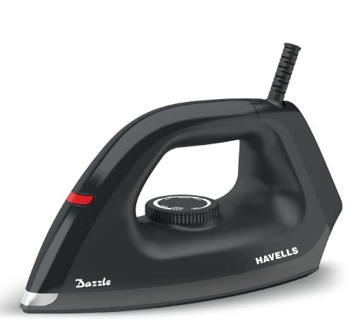 Havells Dry Iron Dazzle 1100 Watts, Iron Press, Greblon Non Sick Soleplate with German Technology| Shock Proof Body| Aerodynamic Design, 360° Swivel Cord|2 Years Door Step Warranty by Havells (Black) is available on Amazon at best discounted online price. Original price of this product is ₹ 1325. You can buy this product at discounted rate ₹ 679.