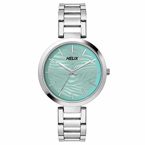 Helix by Timex Analog Watch for Women with Mint Round Dial & Silver Stainless Steel Bracelet Band Water Resistant Women's Wrist Watches - TW054HL00