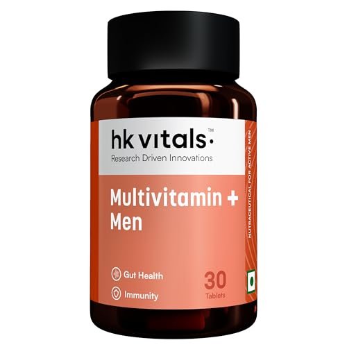 hk vitals Multivitamin Plus Men, 30 Tablets | Daily Multivitamin for Men, For Energy, Stamina, Immunity, Gut, Heart, Bone & Muscle Health is available on Amazon at best discounted online price. Original price of this product is ₹ 359. You can buy this product at discounted rate ₹ 349.