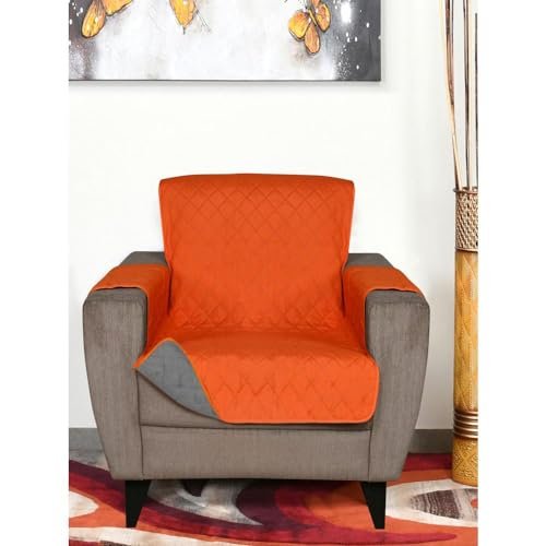 @Home by Nilkamal Solid Polyester 1 Seater Sofa Cover | Reversible & Quilted Sofa Cover | Washable Couch Cover with Non Slip Foam| Set of 1-179 x 165 cm | Orange & Grey