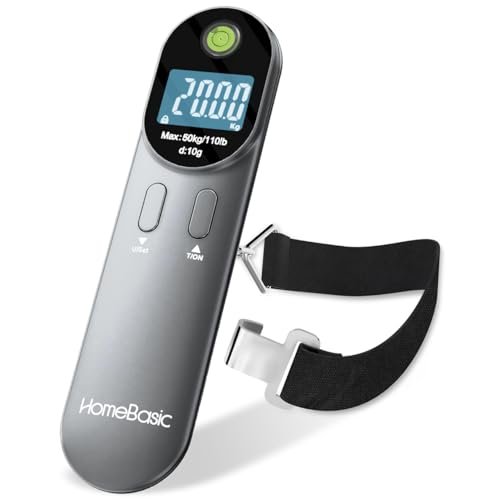 - Compact & Lightweight Design: The HOMEBASIC Digital Luggage Scale is designed for portability with a small, lightweight frame that easily fits in your bag or pocket. It features a sturdy hook and strap, ensuring effortless weighing without adding extra weight to your luggage. Perfect for travelers, frequent flyers, and vacationers.