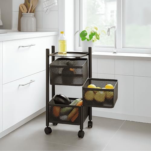HomeGrits 3-Layer Revolving Square Storage Trolley – Black Metal Swinging Basket Rack with Wheels – Space-Saving Square Organizer for Kitchen, Bathroom, Office & Home Essentials is available on Amazon at best discounted online price. Original price of this product is ₹ 4999. You can buy this product at discounted rate ₹ 1003.24.