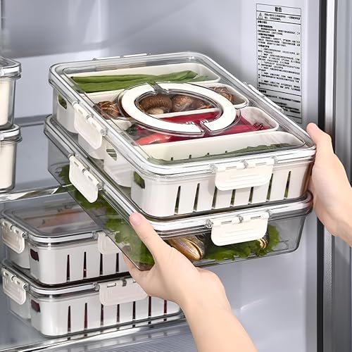 Homeor Divided Fridge Storage Boxes With 4 Serving Veggie Tray with Lid & Handle, Fridge Organizer with Removable Compartment, Fridge Storage Containers, Pantry Organizer Kitchen Accessories, 1 Piece is available on Amazon at best discounted online price. Original price of this product is ₹ 3999. You can buy this product at discounted rate ₹ 492.31.