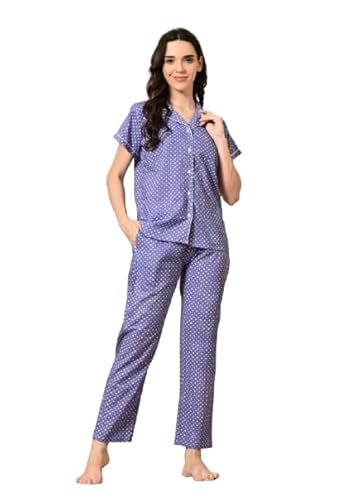 Ichaa Women’s Cotton Purple Dotted Printed Shirt Top and Pyjama Night Wear Night Suit or Lounge Wear Set is available on Amazon at best discounted online price. Original price of this product is ₹ 1999. You can buy this product at discounted rate ₹ 370.47.
