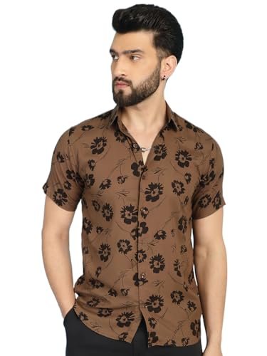 Indian Needle Brown Classic Floral Printed Casual Shirt (Brown, S)