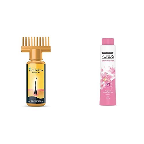 Indulekha Bhringa Hair Oil, 100ml And POND’S Dreamflower Fragrant Talcum Powder, Pink Lily, 400 g