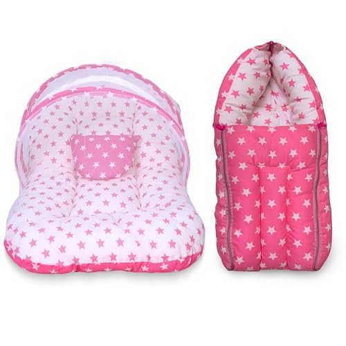Infans Mini Cotton Baby Bedding Set for New Born Baby Sleeping Bag, Mosquito Net Bed Suitable Upto 6 Months Babies (Star Pink), 500 TC is available on Amazon at best discounted online price. Original price of this product is ₹ 2399. You can buy this product at discounted rate ₹ 399.