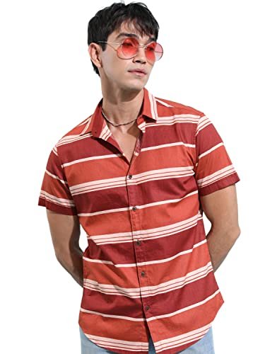 KETCH Mens Half Sleeve Casual FIT Shirt (KHSH001307_Rust_M)