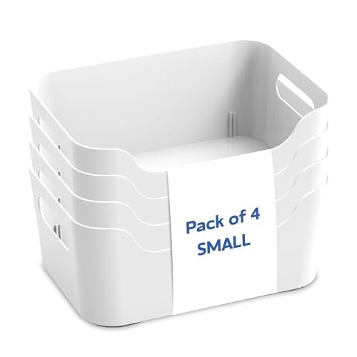 - Versatile Organization: Set of 4 Small plastic baskets with handles, perfect for tidying up clothes, toys, stationary, cosmetics, and more.
