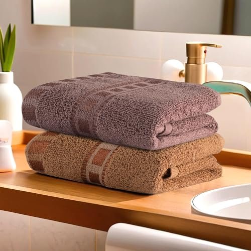 - ✅ Package Contains – 2 Piece Face Towel | Check Border | Color – Golden & Brown | Material – Cotton | Product Dimensions – 53 cm x 35 cm x 1 cm