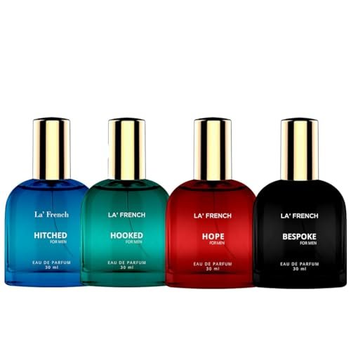 LA’ French Perfume For Men 30 Ml X 4 I.E 120Ml | Hitched + Hooked + Hope + Bespoke | Long Lasting | Spicy Citrus & Musky Fragrance Notes | Eau De Parfum For Boyfriend And Husband., Liquid