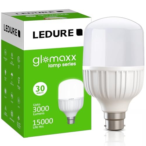 LEDURE 30W Glomaxx LED Lamp | 3000 Lumens Cool Day White (6500K) | LM-80 Certified Energy Efficient B22 Bulb | Stable Output with Power Fluctuation Protection | White | Pack of 1 is available on Amazon at best discounted online price. Original price of this product is ₹ 680. You can buy this product at discounted rate ₹ 279.