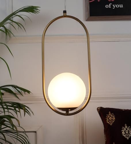 Lexton Golden Capsule Decorative Hanging Ceiling Pendant Light, White Globe & Metal for Bedroom, Living Room (Bulb Not Included)