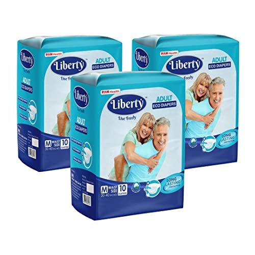 Liberty Popular Adult Diapers, Tape Style, Medium (M) Size, 30 Count, Waist Size (76-101cm | 30-40 inches), Unisex, High Absorbency, Leak Proof, Wetness Indicator, Pack of 3, 10 count/pack is available on Amazon at best discounted online price. Original price of this product is ₹ 1500. You can buy this product at discounted rate ₹ 545.