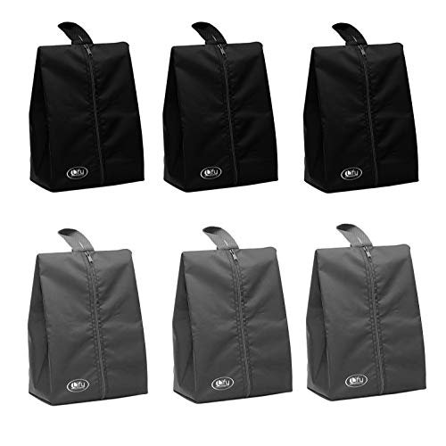 Lify Shoe Storage Organizer Bags Set, Water-Resistant Nylon Fabric with Sturdy Zipper for Traveling (6 Pack) (Black & Grey)