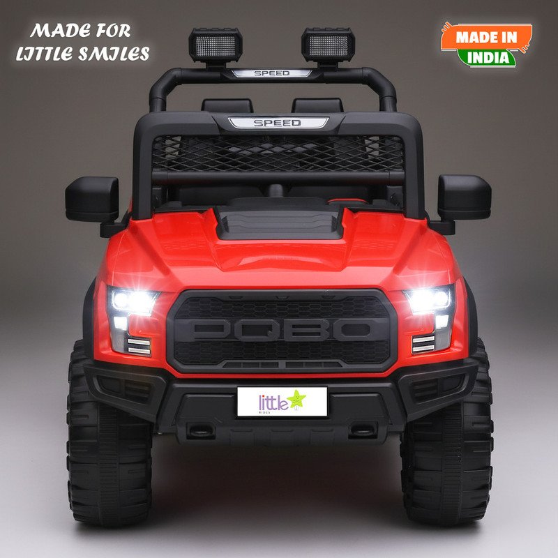 LITTLE RIDES Pobo 12v Battery Operated Jeep for Kids, with Light & Music Big Jeep Battery Jeep Battery Operated Ride On(Red) is available on flipkart at best discounted online price. Original price of this product is ₹ 14999. You can buy this product at discounted rate ₹ 6175.