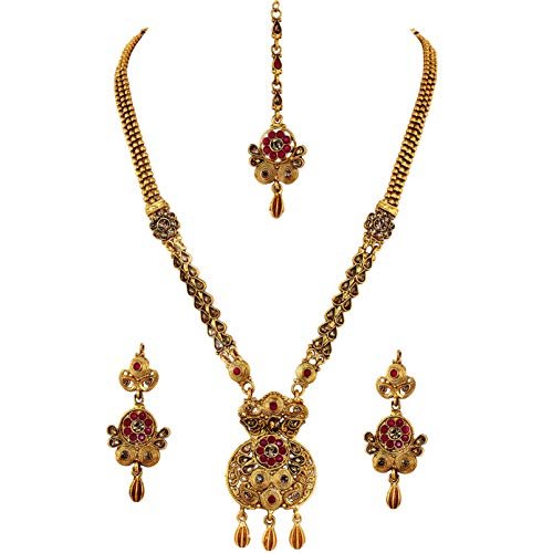 Lucky Jewellery Designer Gold Plated Maroon Color Copper Stone Long Necklace Set for Girls & Women (430-G2SR-1083-RED) is available on Amazon at best discounted online price. Original price of this product is ₹ 3510. You can buy this product at discounted rate ₹ 141.82.