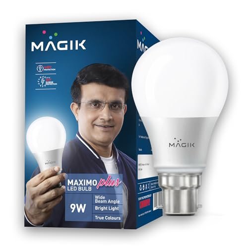 MAGIK Maximo Plus 9W LED Bulb | Warm White (3000K) | B22 Base | Energy Efficient with 4kV Surge Protection | Long Life LED | Pack of 1 is available on Amazon at best discounted online price. Original price of this product is ₹ 155. You can buy this product at discounted rate ₹ 59.