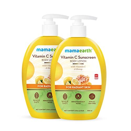 Mamaearth Vitamin C Sunscreen Body Lotion For All Skin Types Body Lotion Spf 30 With Vitamin C & Honey For Radiant Skin -300 Ml (Pack Of 2) is available on Amazon at best discounted online price. Original price of this product is ₹ 798. You can buy this product at discounted rate ₹ 398.