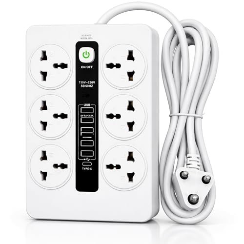 - 🔌 VERSATILE CHARGING OPTIONS: Features 6 universal AC sockets that accept plugs from multiple countries, plus 5 USB ports and 1 Type-C port for simultaneous charging of up to 12 devices including laptops, mobiles, tablets, and other electronics