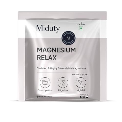 Miduty Chelated Magnesium Bisglycinate – 1000mg Supplement For Muscle Recovery, Better Sleep & Stress Relief | Vitamin B6 – Non-Laxative, High Absorption | Cramps & Migraine Relief – 6 Veg Capsules (Magnesium, 6, count) is available on Amazon at best discounted online price. Original price of this product is ₹ 149. You can buy this product at discounted rate ₹ 59.