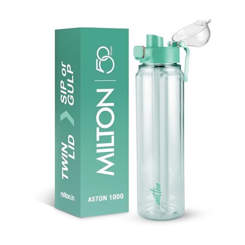 MILTON Aston 1000 BPA & BPS-Free Water Bottle 1 ltr | Food-Grade Plastic | One-Click Open | Leak-Proof | Sip & Gulp Lid I Ideal for Office, School, College, Gym, Turquoise Blue is available on Amazon at best discounted online price. Original price of this product is ₹ 390. You can buy this product at discounted rate ₹ 234.