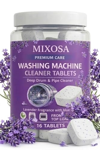 MIXOSA Lavender-scented Washing Machine (16 Tablets) Deep Cleaner Descaler Tablets for All Front and Top Load Machines, with Descaling and Stain-Removing Power (Lavender)