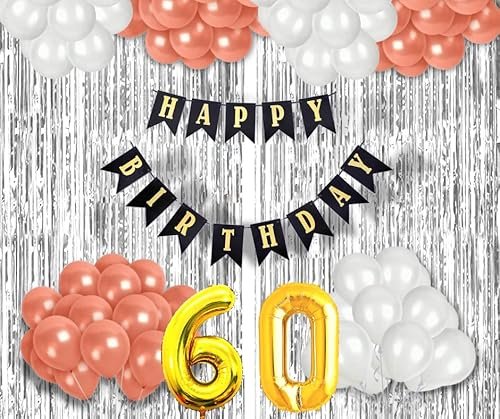 Mystic Toy Store 60th Birthday Decoration items for Girls with Rose Gold and White Balloons, Black Happy Birthday Banner, Silver Foil Curtain, Foil Balloon number 60 is available on Amazon at best discounted online price. Original price of this product is ₹ 2999. You can buy this product at discounted rate ₹ 88.7.