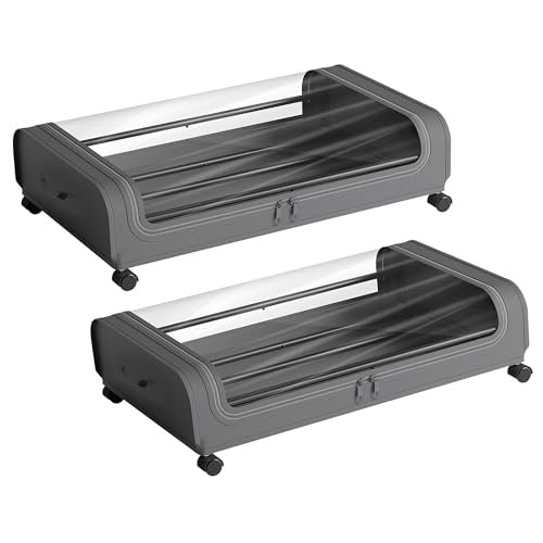 Nayasa Under Bed Storage Box | Storage Organizer | Ideal For Small Space Clothes Storage | Clothes, Shoes, Toys, Books With Clear Cover | Lockable Wheels | Set of 2 | Grey