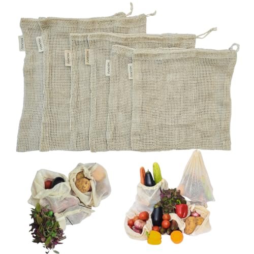 • 🌿ECO-FRIENDLY AND REUSABLE: These kitchen reusable grocery bags are zero waste and fully biodegradable. Forget about any plastic or heavy metal toggles and closure beads. Use these drawstring mesh bags hundreds of times and they will still retain their quality.