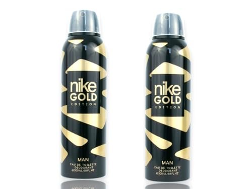 - COMBO PACK: Set of two 200ml Nike Gold Edition EDT deodorants for men featuring an elegant black and gold design