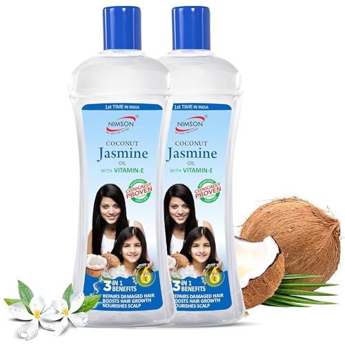Nimson Coconut Jasmine Hair Oil with Vitamin E | For Shiny, Long Hair | Non-Sticky & Nourishing | 180ml x 2 is available on Amazon at best discounted online price. Original price of this product is ₹ 350. You can buy this product at discounted rate ₹ 123.92.