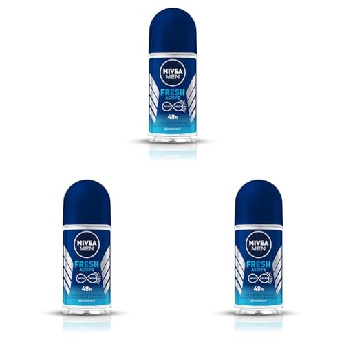 NIVEA MEN Fresh Active 50ml Deo Roll On | With Fresh Ocean Extracts| 72 H Freshness| 0% Alcohol | Dermatologically Approved & Paraben Free Formula (Pack of 3)