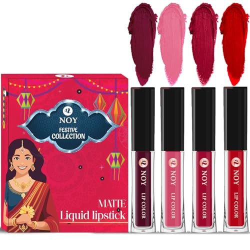 Noy Lipsticks For Women Waterproof Festival Collection Pack of 4 Shades Wine, Peach, Cherry Pink, Red Shades is available on Amazon at best discounted online price. Original price of this product is ₹ 599. You can buy this product at discounted rate ₹ 109.