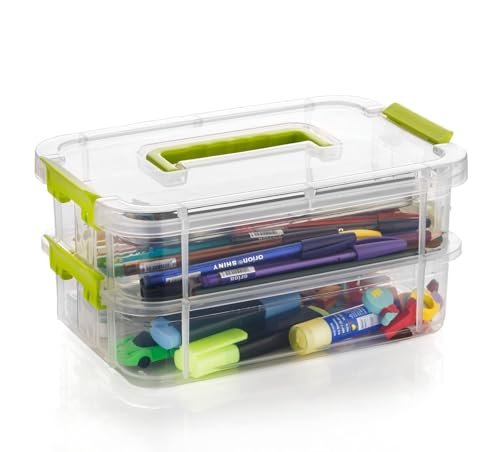 OLMARTT KITCHENWARE 2 Layer Plastic Storage Containers,Multipurpose Clear Stack & Carry Box,Portable Craft Organizers, and Storage Bin for Organizing Arts & Crafts, Sewing, Stationery Box,(Multicolor)