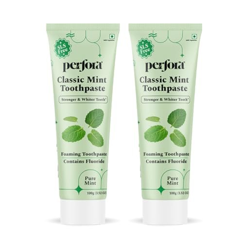 Perfora Classic Mint Toothpaste – 100g | Enamel Safe Teeth Whitening Toothpaste for Men & Women | For Strong & White Teeth | SLS, Titanium Dioxide & Sodium Saccharin Free | Pack Of 2 is available on Amazon at best discounted online price. Original price of this product is ₹ 176. You can buy this product at discounted rate ₹ 79.