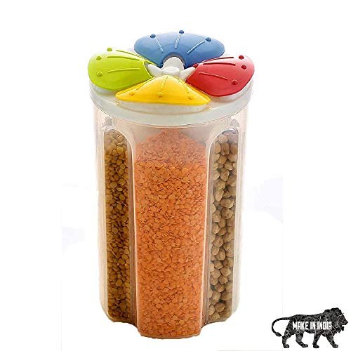 Primelife New Plastic 4 Grid Cereal Dispenser Storage Jar Box Container Bin with Lid 2500 ML – Multicolor (4 Secction) is available on Amazon at best discounted online price. Original price of this product is ₹ 699. You can buy this product at discounted rate ₹ 143.73.