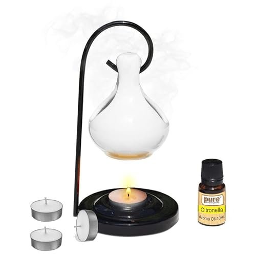 - Material : Ceramic Aroma Burner oil diffuser with Metal Stand, coming with 4 tea candles and 10 ml oil Set.