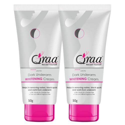 Qraa Advanced Lacto Dark Underarm Cream | For Uneven Skin Tone |Paraben Free | For Dark Body Parts like Neck, Ankles, Knuckles, Armpits, Thighs, Pack Of 2 (50gm*2)