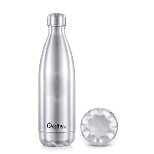 RADHE MART Thermosteel Water Bottle Silver | Double Walled Vacuum Insulated Flask Bottle | Keeps Drinks Hot or Cold for 24 Hours | Easy to Carry (1000ML)