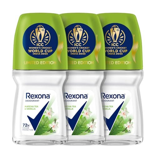 Rexona Matcha Tea & Vanilla Antiperspirant Roll-On | for Women | 72H Odour Protection | Limited Edition Pack – ICC Women’s Cricket World Cup India 2025 |50 ML (Pack of 3) is available on Amazon at best discounted online price. Original price of this product is ₹ 897. You can buy this product at discounted rate ₹ 326.95.