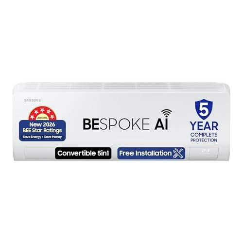 Samsung 1 Ton 5 Star Bespoke AI Inverter Smart Split AC (2026 Model, WiFi, Energy Saving, Voice Control, Powerful Cooling, Copper, Digital Inverter, 4 Way swing, 5 Step Convertible, AR50H12D1ZHNNA)