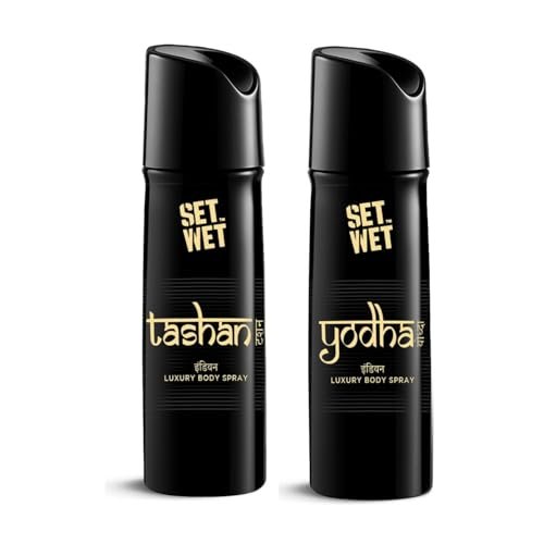 Set Wet Tashan & Yodha Indian Luxury Body Spray I Long Lasting Body Spray for Men I Manly & Luxury Fragrance for Men, 150ml Pack of 2 is available on Amazon at best discounted online price. Original price of this product is ₹ 800. You can buy this product at discounted rate ₹ 225.28.