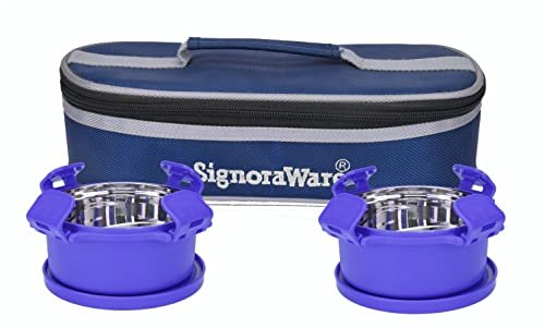 Signora Ware 350Ml+350Ml Smart Microwave Safe Twin Midday Stainless Steel Lunch Box with Bag, Food Grade BPA Free Conatiners, Air Tight and Sleek Leak-Proof Lid Tiffin Boxes (Set 2 Violet) is available on Amazon at best discounted online price. Original price of this product is ₹ 765. You can buy this product at discounted rate ₹ 325.02.