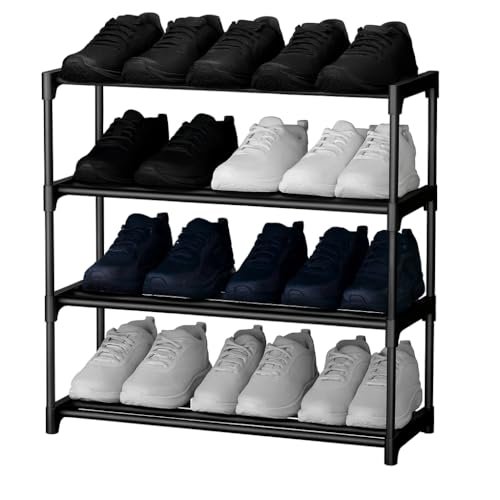 • SPACE-SAVING DESIGN: 4-tier shoe rack organizer perfect for maximizing vertical storage space, featuring a sleek black metal frame that complements any home decor
